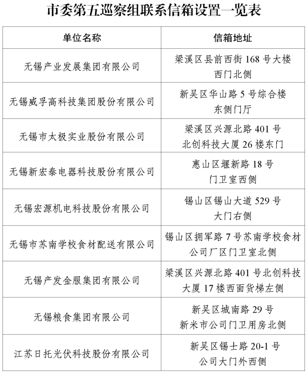 市委巡察公告 根據(jù)市委巡察工作領(lǐng)導(dǎo)小組統(tǒng)一部署,市委第五巡察組對(duì)無(wú)錫產(chǎn)業(yè)發(fā)展集團(tuán)有限公司黨委開(kāi)展常規(guī)巡察,時(shí)間為2024年4月25日至7月5日。根據(jù)有關(guān)規(guī)定,市委巡察組主要受理反映無(wú)錫產(chǎn)業(yè)發(fā)展集團(tuán)有限公司黨委領(lǐng)導(dǎo)班子及其成員、下一級(jí)主要負(fù)責(zé)人以及相關(guān)重點(diǎn)崗位干部(含已離退休、已調(diào)離)的來(lái)信來(lái)電來(lái)訪。其他不屬于巡察受理范圍的信訪問(wèn)題,將按規(guī)定轉(zhuǎn)交有關(guān)部門認(rèn)真辦理。市委巡察組受理信訪時(shí)間截止到2024年7月2日。 巡察期間設(shè)專門舉報(bào)電話:18800559869,可同時(shí)接收短信、微信,接聽(tīng)時(shí)間為工作日8:00-18:00; 郵政信箱:江蘇省無(wú)錫市0450號(hào)郵政信箱; 郵政編碼:214031; 聯(lián)系信箱:無(wú)錫產(chǎn)業(yè)發(fā)展集團(tuán)有限公司(梁溪區(qū)縣前西街168號(hào))大樓西門北側(cè)。 特此公告。 中共無(wú)錫市委第五巡察組 2024年4月25日 ![]() ![]() |